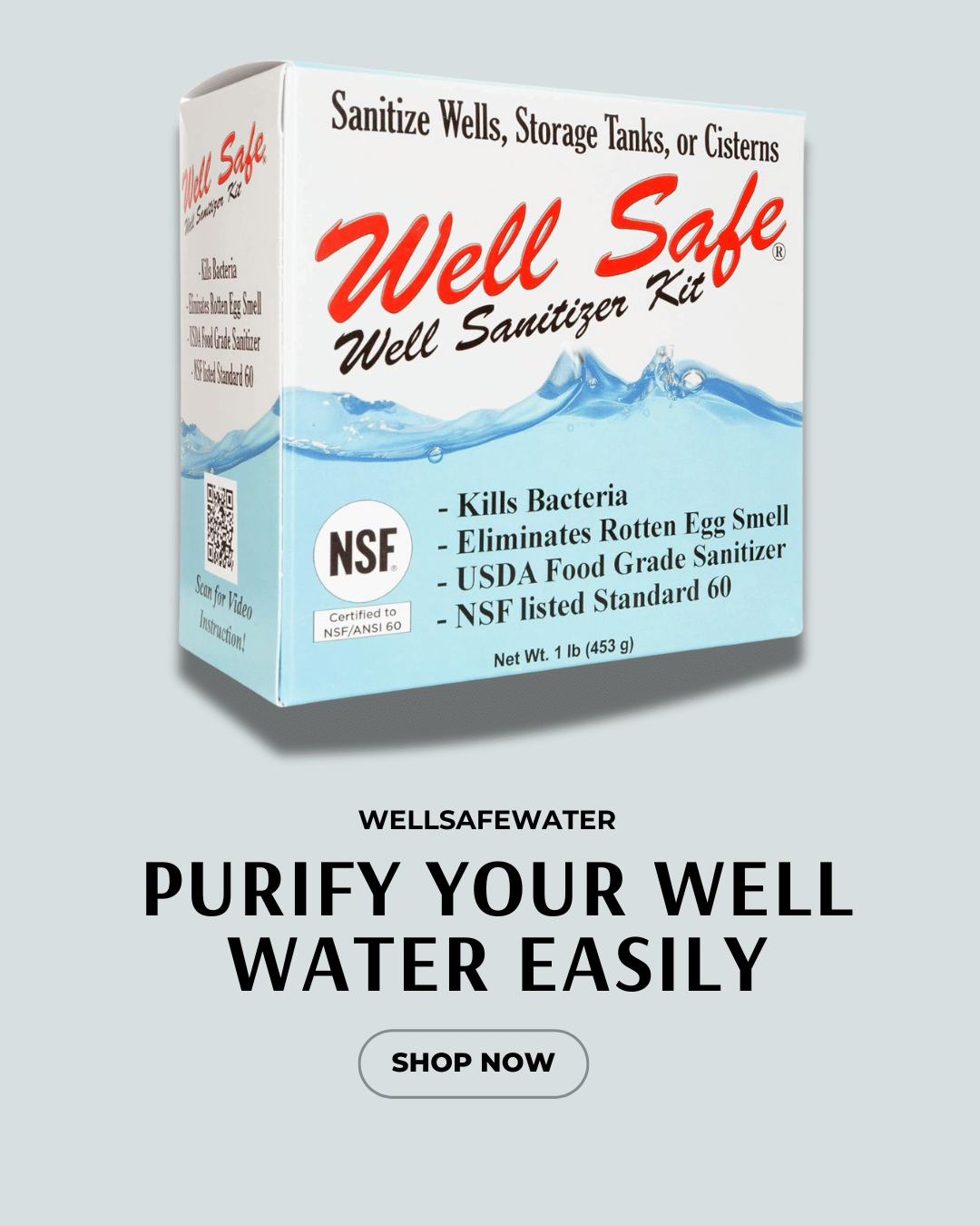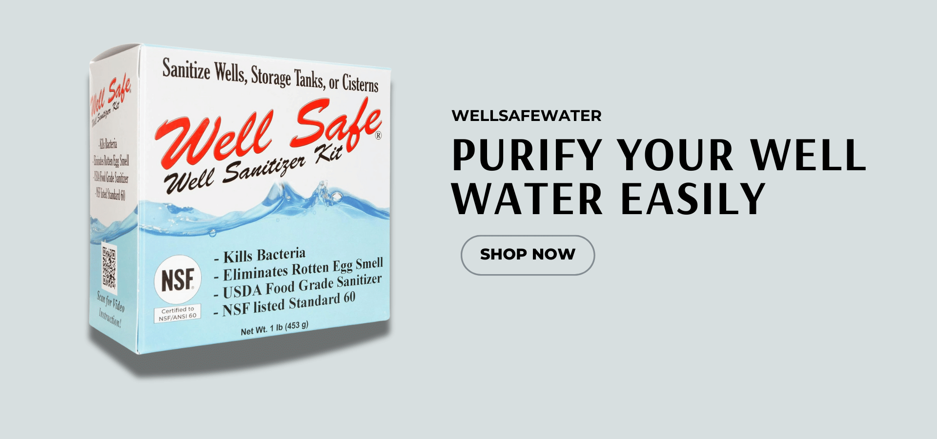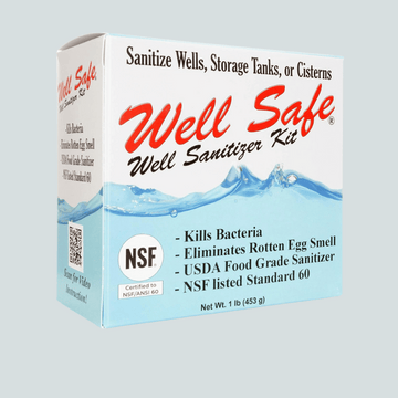 The Well Safe® - Well Sanitizer Kit is designed for easy, DIY water purification and well treatment. It kills bacteria, improves taste and odor, and reduces iron bacteria build-up.